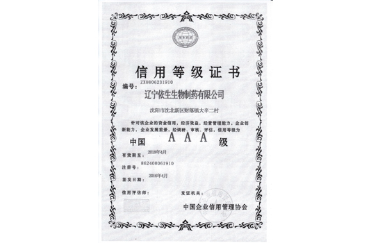被評為沈陽市非公有制經(jīng)濟(jì)“百強(qiáng)企業(yè)”、全國質(zhì)量信用AAA級信用企業(yè);