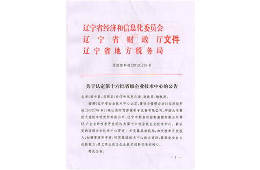 被評為遼寧省省級企業(yè)技術(shù)中心。